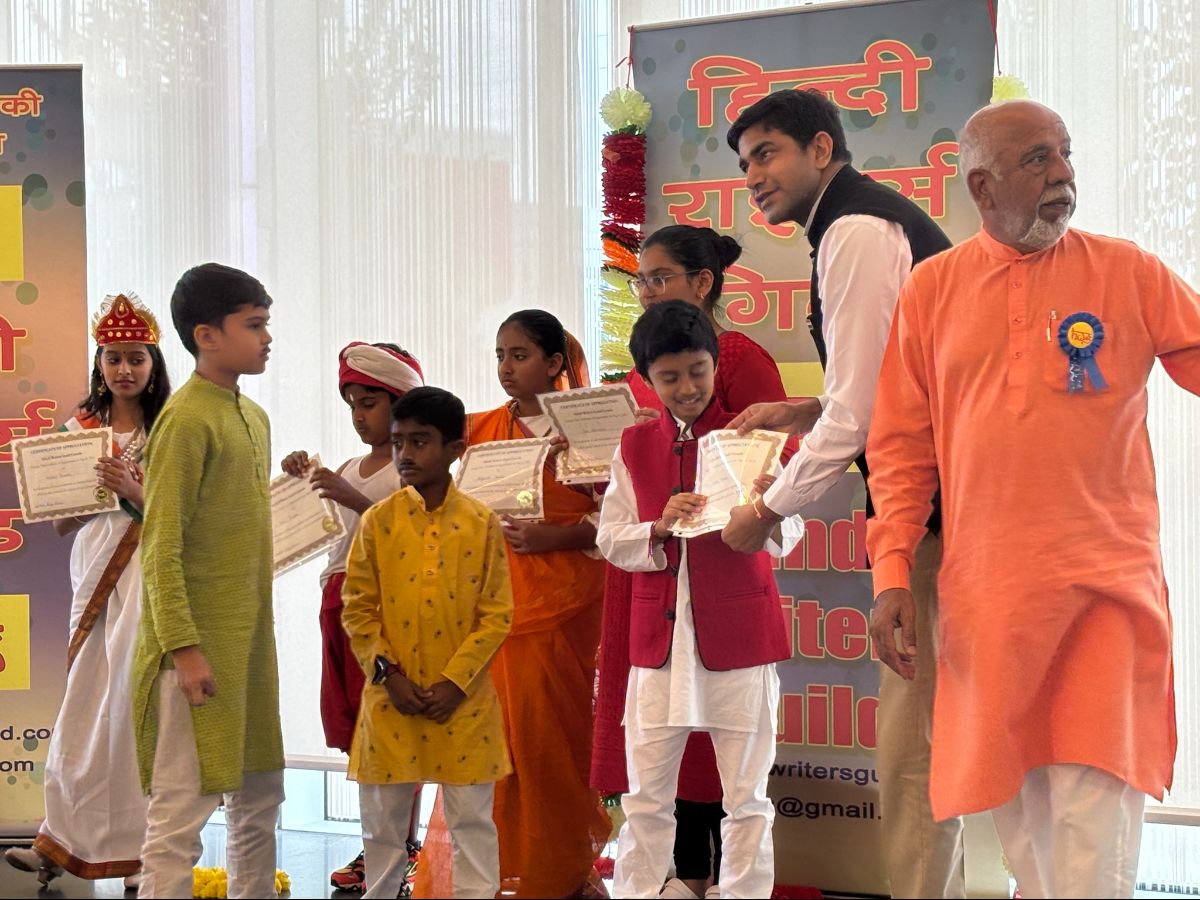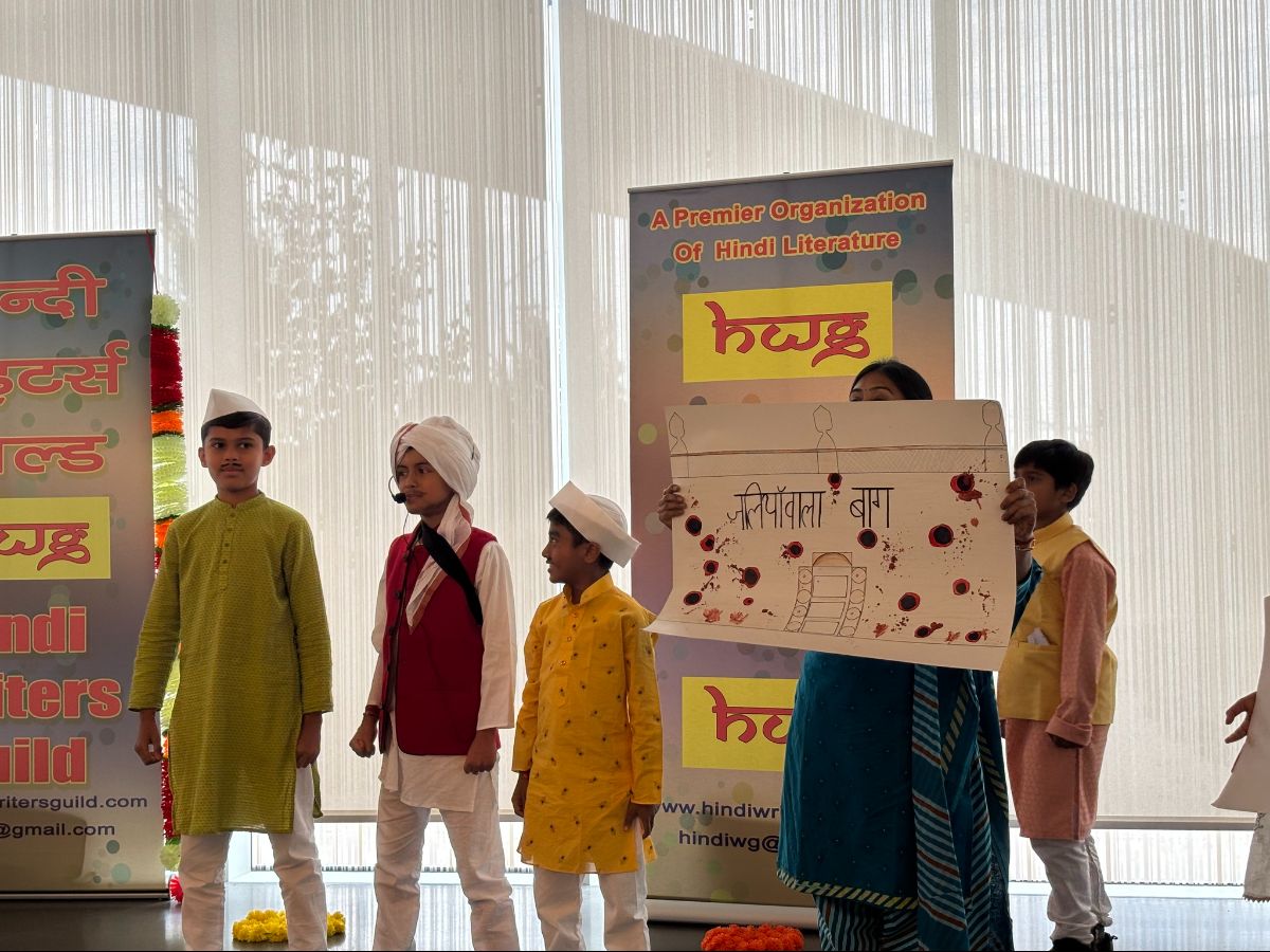 बच्चे बड़ों सबने पूरे उत्साह के साथ भाग लिया तथा हिन्दी का तिरंगा उन्नत किया।