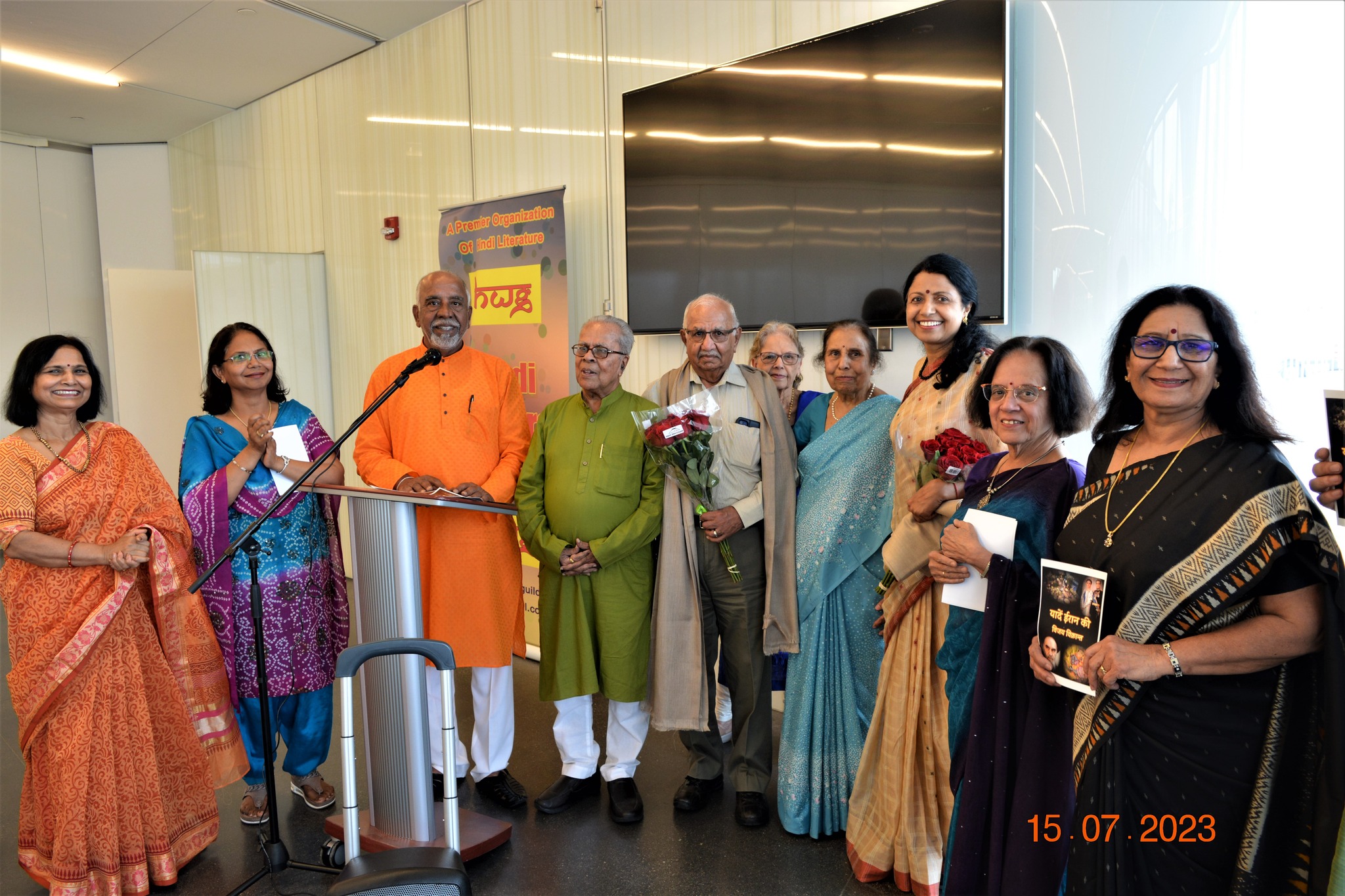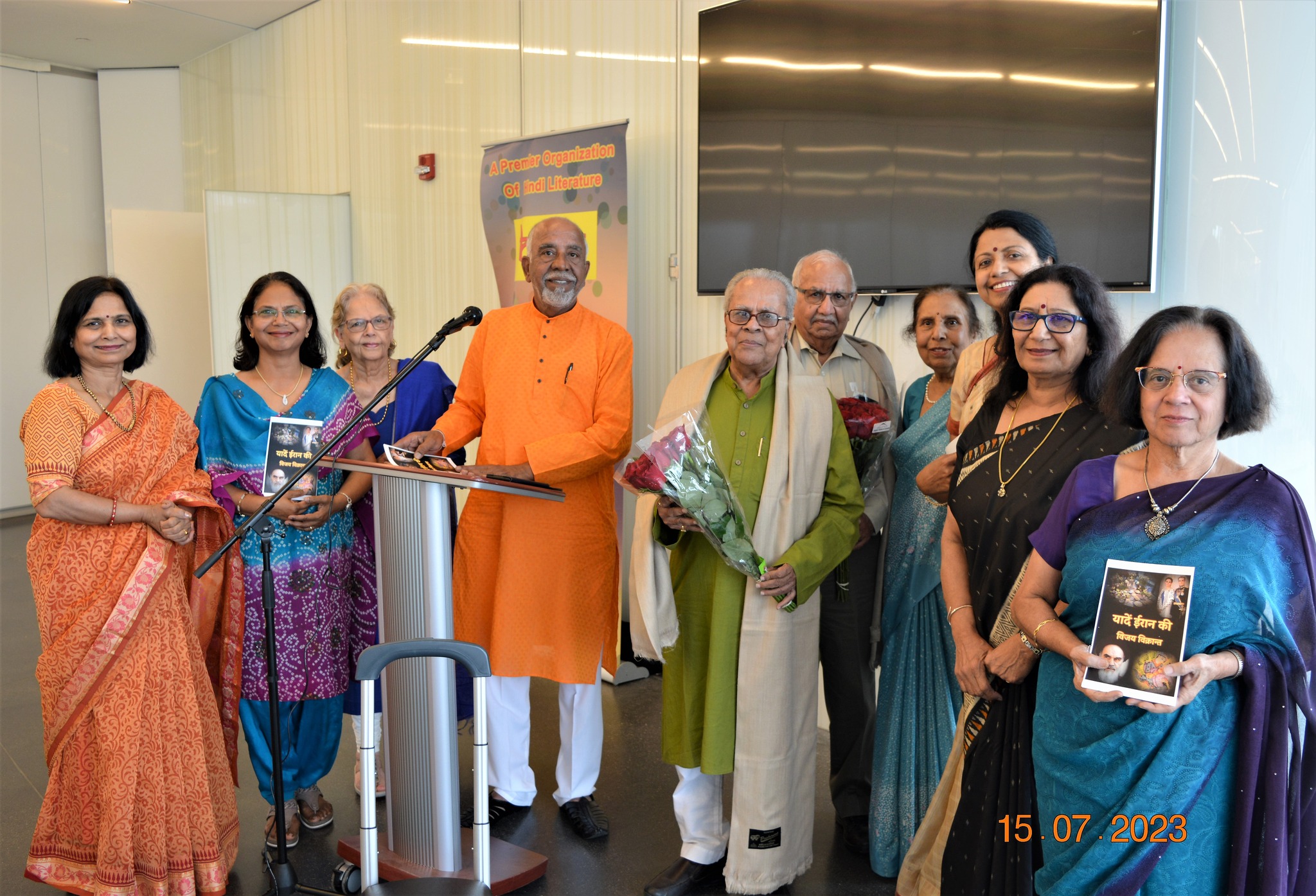 रिपोर्ट: डॉ. शैलजा सक्सेना जुलाई 15, 2023 को हिन्दी राइटर्स गिल्ड कैनेडा ने संस्था के सह-संस्थापक श्री विजय विक्रांत जी की पहली पुस्तक “यादें कुईरान की” का विमोचन बहुत उत्साह और हर्ष के वातावरण में हुआ। इस पुस्तक का ई- प्रकाशन श्री सुमन मार घई जी ने अपनी कम्पनी पुस्तक बाज़ार.कॉम के माध्यम से किया है। यह कैनेडा से निकली संभवत: पहली संस्मरणात्मक पुस्तक है। यह हमारा सौभाग्य था कि इस कार्यक्रम की अध्यक्षता करने के लिए भारत से अमेरिका आए हुए डॉ. योगेन्द्रनाथ शर्मा ’अरुण’ ने की। वे इस कार्यक्रम के लिए विशेषरूप से अमेरिका से आए थे। इस कार्यक्रम का प्रारंभ संस्था की सह-संस्थापक निदेशक डॉ. शैलजा सक्सेना, निदेशिका कृष्णा वर्मा और आशा बर्मन जी ने फूल और शॉल से आदरणीय ’अरुण’ और श्री विजय विक्रांत जी का स्वागत किया। इस कार्यक्रम में भाग लेने के लिए अरुण जी के बेट, बहू, पोती तथा मित्र भी आए थे। कार्यक्रम संचालक डॉ. नरेन्द्र ग्रोवर जी ने सभी उपस्थित लोगों का स्वागत किया। लोकार्पण के पश्चात अनेक विद्वानों ने पुस्तक पर अपने विचार रखे और विक्रांत जी को बधाई दी। कार्यक्रम के प्रारंभ में श्रीमती आशा बर्मन ने अपना और टोरंटो की वरिष्ठ साहित्यकार श्रीमती अचला दीप्ति कुमार जी का समवेत वक्तव्य रखा और पुस्तक को बोलचाल की भाषा, फ़ारसी के शब्दों का सहज प्रयोग करने वाली और ईरान के समाज की विस्तृत जानकारी देने वाली पुस्तक कहा। डॉ. रत्नाकर नराले जी ने कहा कि ऐतिहासिक संस्मरण पुस्तकों में इतिहास जो घटित हुआ और जो लिखा गया, उसके बीच अंतर कम होना चाहिए और विक्रांत जी ने यह किया। इसके बाद विक्रांत जी पुस्तक पर बोलते हुए बताया कि संस्मरण के लिए उन्होंने ईरान को ही क्यों लिया? ईरान की क्रांति में दंगों, जुलूसों को देखना और आम लोगों की भय और पीड़ा वैसी ही लगी जो विभाजन के बाद भारत में हुई थी जिसे उन्होंने अपने बाल्यपन में देखा था। आचार्य संदीप त्यागी ने ’अरुण’ जी को प्रणाम और स्वागत करते हुए उनके लिखे दोहे, जो उन्होंने उनके बाबा हरिसिंह त्यागी के लिए लिखे थे, वे सुनाये। फिर विजय विक्रांत जी के नाम की चर्चा करते हुए बताया कि जो विजय करके उतर रहा है वह विजय विक्रांत है। इस पुस्तक में वर्णित जीवन की यादोंको लिखने के पीछे की दार्शनिक भाव का विश्लेषण भी उन्होंने किया। श्रीमती कृष्णा वर्मा जी ने पुस्तक के कुछ फ़ारसी शब्दों की चर्चा करते हुए कहा कि ये शब्द भारत के घरों में भी प्रचलित थे जैसे हल्दवाना- यानी तरबूज! उन्होंने कहा कि पाकिस्तान से आए अपने परिवार की अनेक यादें इस किताब से उभर आईं। डॉ. बंदिता सिन्हा ने कहा कि पुस्तक में यादों को मनकों की तरह पिरोया है। 17 से 20 भागों में अनेक यादें लिखीं और हर बात, संघर्ष को रोचक तरीके 