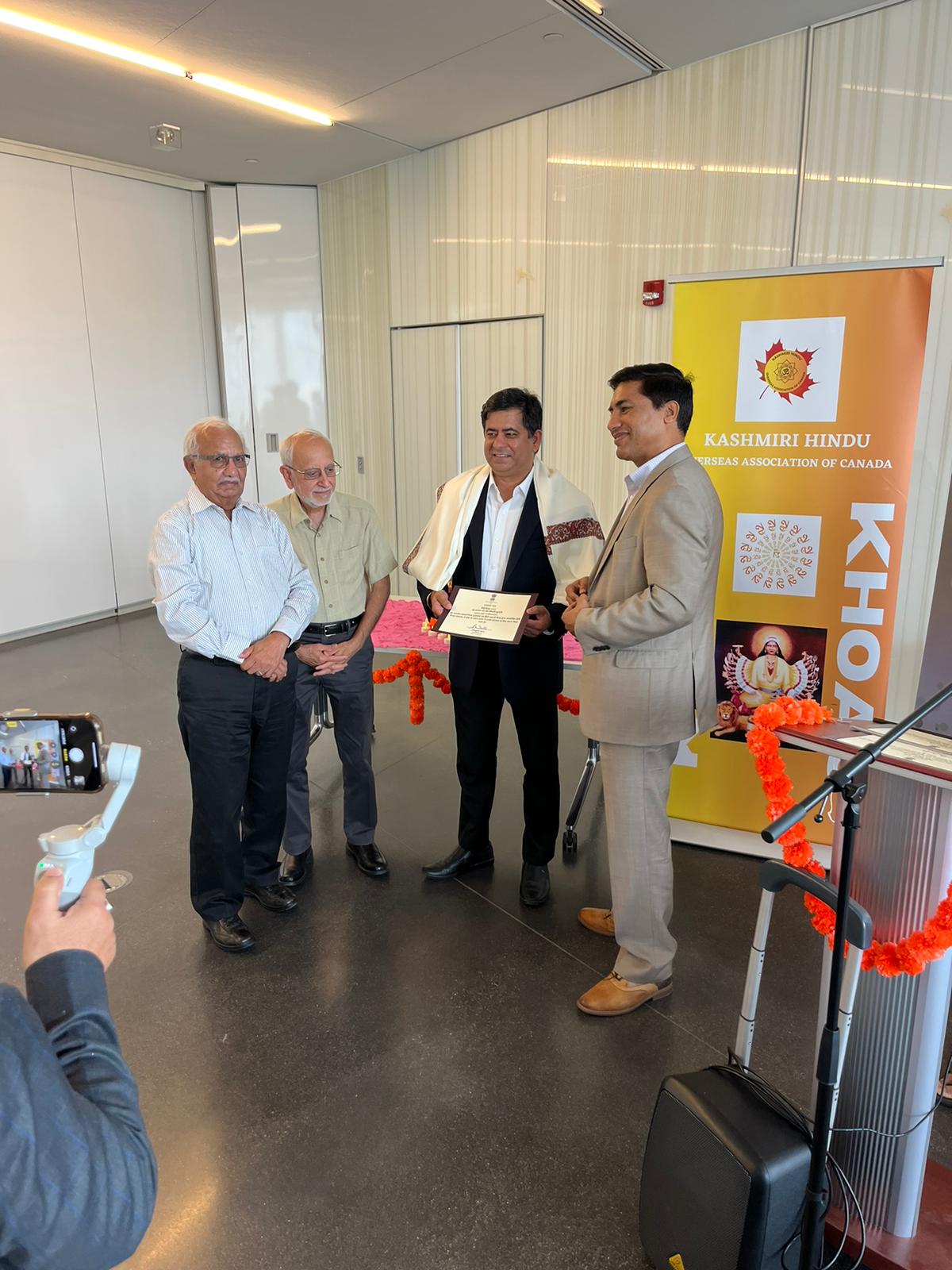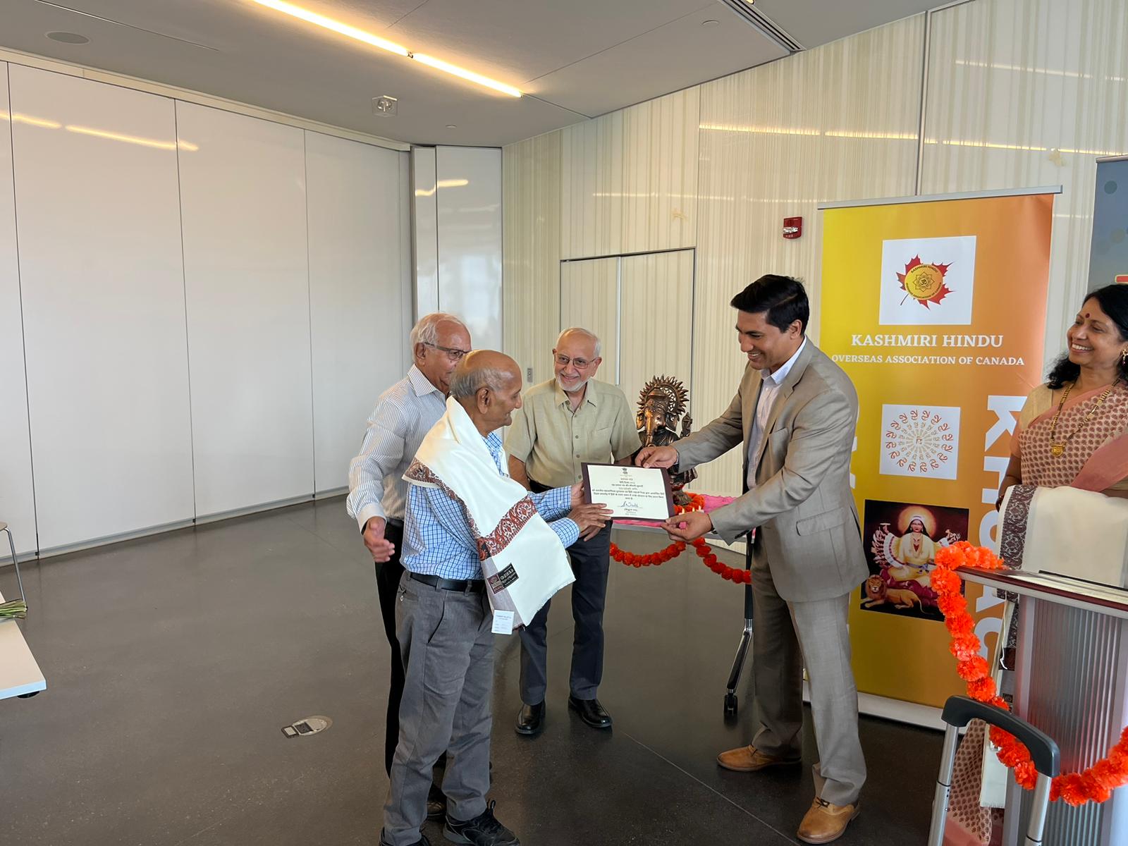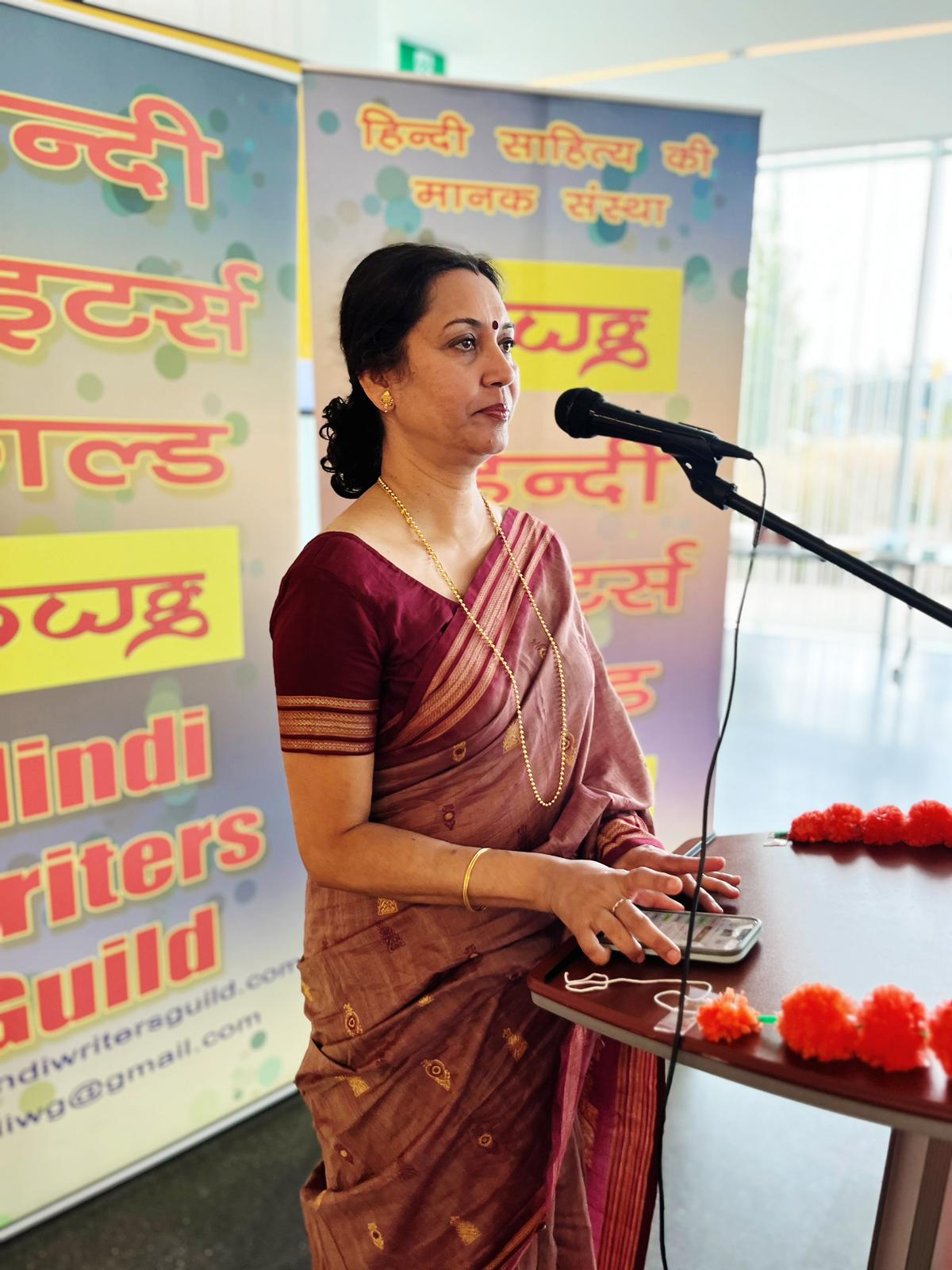 शनिवार दिनांक 16 सितम्बर, 2023 को ब्रैम्पटन की चिंकूज़ी लाइब्रेरी में हिन्दी राइटर्स गिल्ड ने टोरोंटो स्थित भारतीय काउंसलावास के सहयोग से हिन्दी दिवस का आयोजन किया। कार्यक्रम को दो सत्रों में रखा गया। पहले सत्र में परिचर्चा जिसका विषय था "कोरोनाकाल की चुनौतियों को संभावनाओं में बदलती हिन्दी" तथा दूसरे सत्र में कैनेडा में हिन्दी के प्रचार-प्रसार से जुड़े कर्मठ सहयोगियों को काउंसलावास द्वारा सम्मान की प्राप्ति। गिल्ड की प्रबंधन समिति के सदस्य श्री योगेश ममगाईं जी ने सभागार में उपस्थित सभी का स्वागत अभिनन्दन करते हुए पहले सत्र के संचालन की कमान संभाली। सर्वप्रथम टोरोंटो की प्रसिद्ध गायिका और साहित्यकार मानोशी चटर्जी को सादर आमंत्रित किया। परम्परा के अनुसार गोष्ठी का शुभारंभ मानोशी चटर्जी के सुमधुर स्वर में सरस्वती वंदना से हुआ। तदुपरांत ममगाईं जी ने आज की चर्चा में भाग ले रहे सहभागियों में से सबसे पहले श्रीमती आशा बर्मन जी को सादर आमंत्रित किया। आशा बर्मन जी ने उपरोक्त विषय पर अपने विचार साझा करते हुए कहा- 'करोनाकाल में एक ओर जीवन की गतिविधियाँ सीमित हो गई थीं पर साथ ही साथ ऐसे कठिन समय में यह आशीर्वाद के रूप में हमें मिला ज़ूम तथा गूगल मीट आदि जिसके द्वारा हम घर में भी रहकर सारे विश्व से कई देशों के हिंदी के विद्वानों से जुड़ सके। ब्लेसिंग इन डिसगाइज। मेरा सौभाग्य रहा है कि मैं इस हिंदी वैश्विक परिवार के साथ जुड़ी हूँ। इस करोना काल में हिंदी राइटर्स गिल्ड कैनेडा ने आभासी मंच पर कई कवि गोष्ठियाँ कीं। अंत में मैं यह कहना चाहूँगी कि सचमुच ही करोना की चुनौतियों में हिंदी भाषा पहले से कहीं अधिक समर्थ हुई है और विदेशों में रहने वाले हिंदी के लेखकों की स्थिति भारतवर्ष में भी सम्मानित हुई है। उन्हें फिजी में सम्मान दिया गया है जैसे शैलजा जी को। यहाँ के लेखकों पर शोध हो रहे हैं यह गर्व की बात है। हमारी हिंदी नि: संदेह हर प्रकार से ही करोनाकाल के समय आभासी मंचों के द्वारा पहले से अधिक समृद्ध हुई है।' गिल्ड की सह संस्थापिका निर्देशिका श्रीमती शैलजा सक्सेना जी ने अपने वक्तव्य में स्पष्ट किया कि संभावना जब तक यथार्थ नहीं बनती तब तक उसमें चुनौती छिपी रहती है तो हर एक व्यक्ति को संस्थाओं और सरकारों से ही सदा अपेक्षा करते रहने के स्थान पर अपने भीतर, अपने क्षेत्र और राज्य के भीतर हिंदी के उपयोग और प्रयोग की, प्रसार और प्रचार की संभावनाओं को देखना चाहिए चाहें वे भारतीय रेस्टोरेंट के मेन्यू कार्ड पर अंग्रेज़ी के साथ हिन्दी लेख के लिए हो या सरकारी पत्रों के हिन्दी अनुवाद के लिए हो.. ऐसे अवसर ढूँढने चाहिए जहाँ हिन्दी का प्रयोग बढ़ सके। गिल्ड के सह संस्थापक निर्देशक श्री सुमन कुमार घई जी 