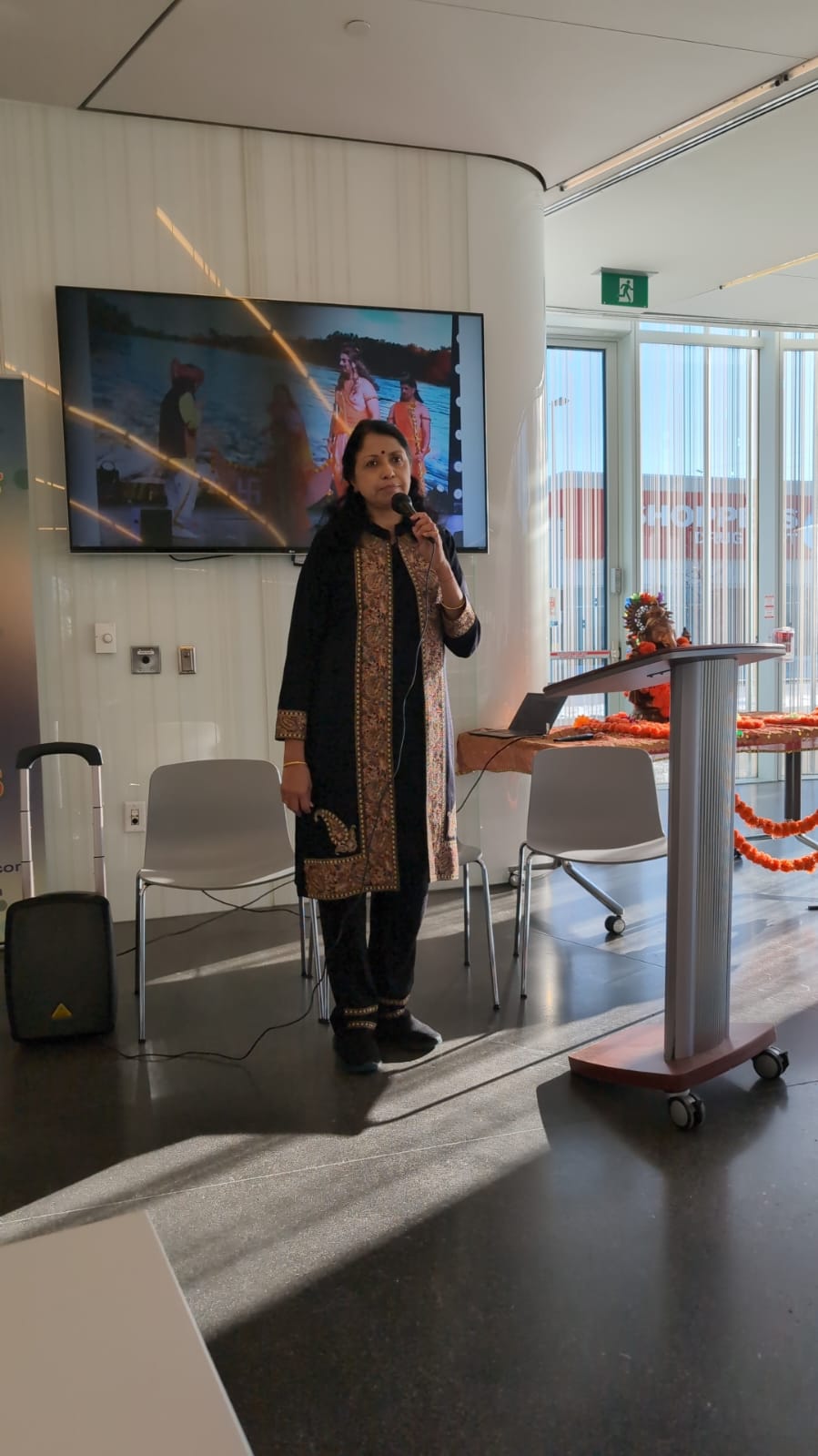 दीप शुक्ल जी ने स्वरचित कविता का पाठ क्या l पूरा वातावरण भक्तिमय था और भुवनेश्वरी जी ने इसे अलौकिक अनुभव बताया l